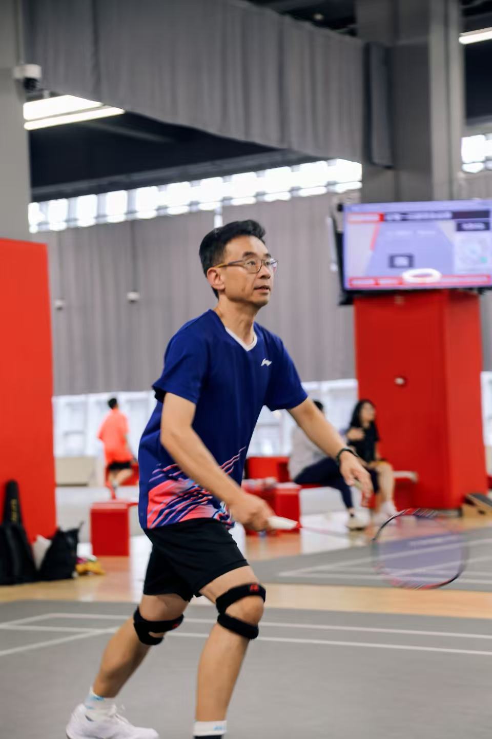 选手们身着运动装,眼神专注,每一次挥拍都凝聚着力量与技巧。赛场火花四溅,后场大力扣杀引得观众阵阵惊呼,网前小球对决则考验着选手的细腻手感,选手们展现出敏捷的步法和多变的球路,精彩回合不断。场边助威声此起彼伏。选手们秉持“球不落地,决不放弃”的拼搏精神,一次次飞身救球的场景将比赛气氛推向高潮。
